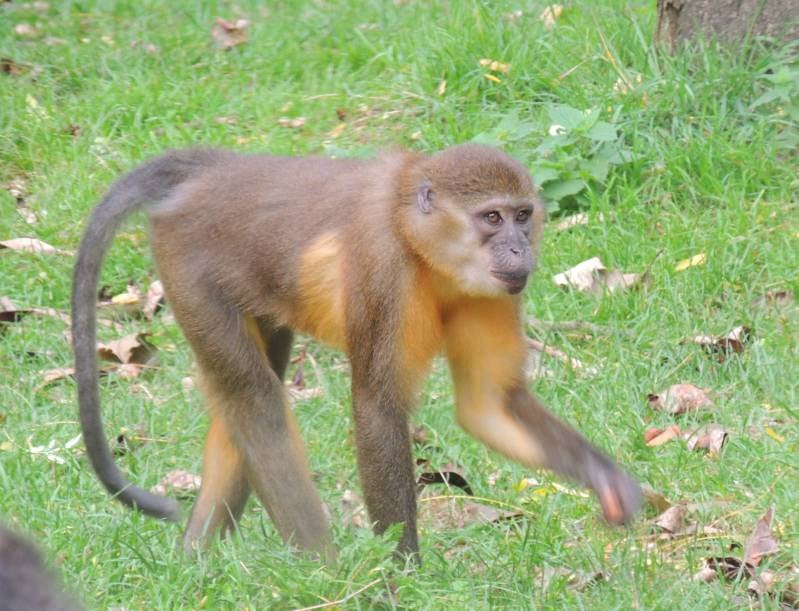 Dit is een goudbuikmangabey; ze lopen bij de gorilla-familie rond.