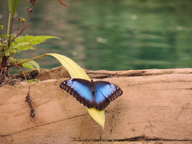 Dit is ook de Blauwe Morpho, maar dan met de vleugels gesloten.