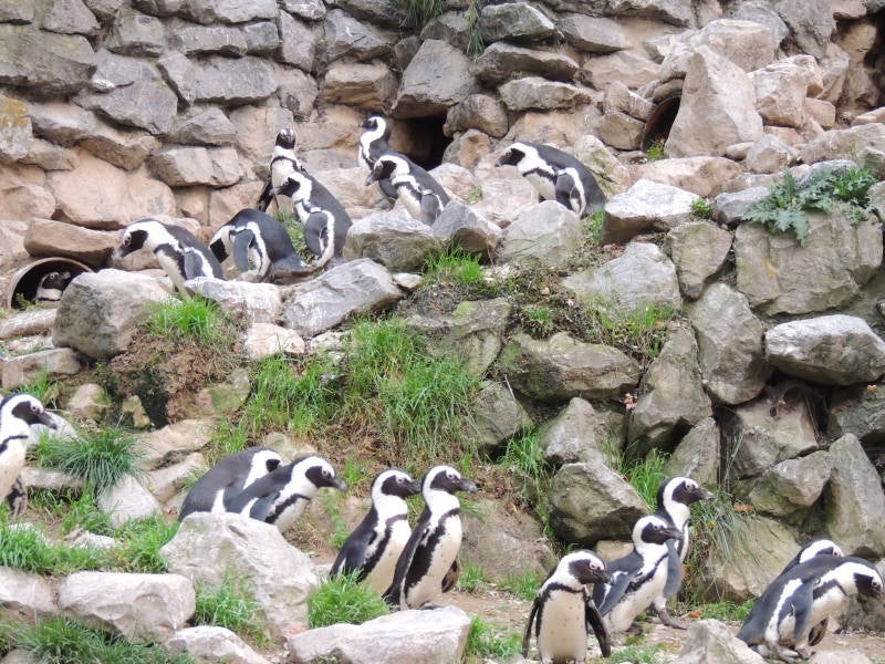 Tot slot aan het eind of het begin van de dierentuin, zie je volop zwartvoetpinquïns. Omdat ze gevoerd worden, komen ze in galop naar de verzorgster toelopen.