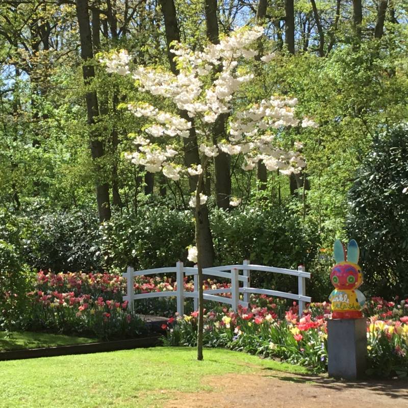 Volop lijsters in de Keukenhof; ze zijn gewend geraakt aan al die mensen, kijk maar; hij poseert voor mij.