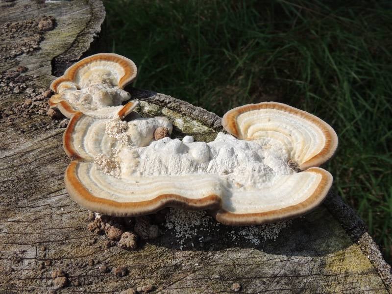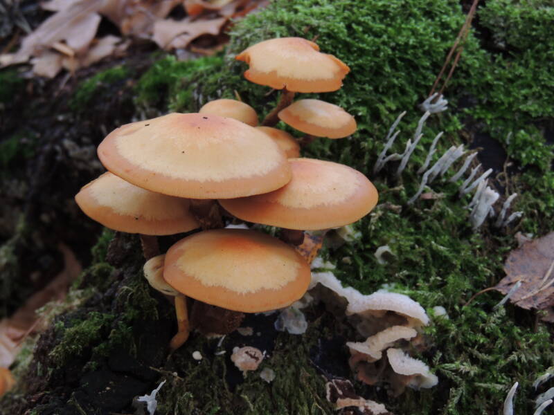 week 45 - Paddenstoelen in het Bennekomse bos. Rechts ziet u het grijze geweizwammetje.