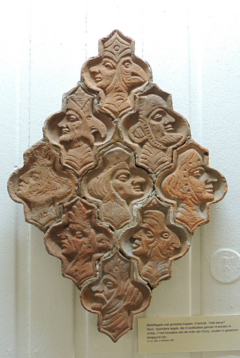 Reliëftegels met groteske koppen - Frankrijk - 13e eeuw.