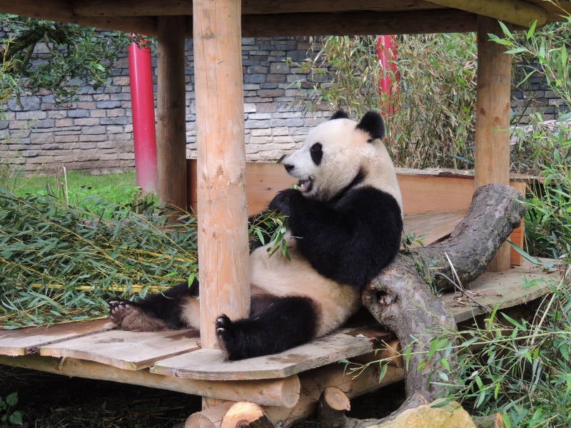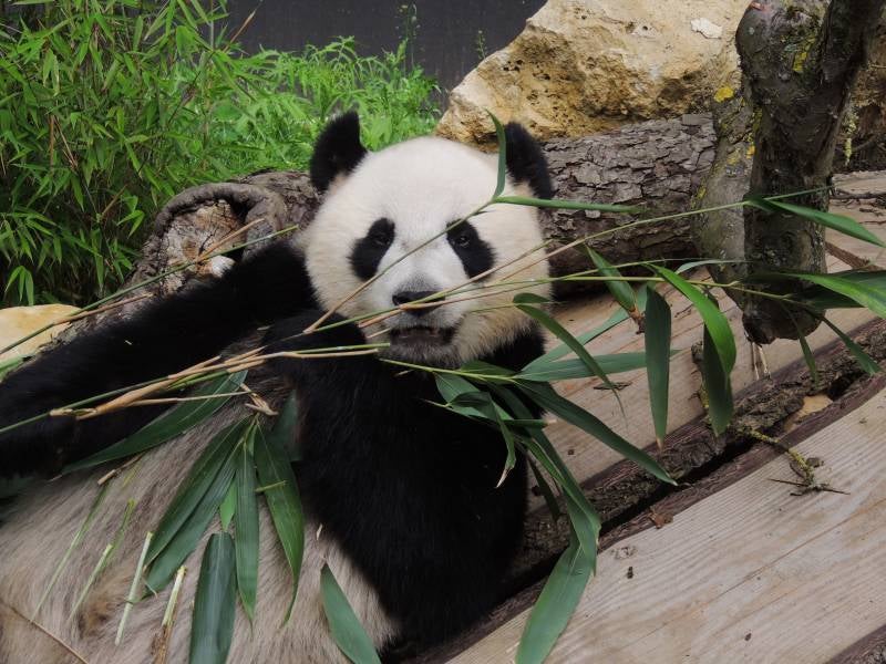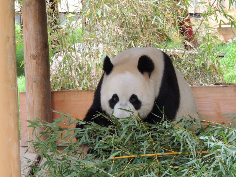 Dit is dan het vrouwtje, die 's middags naar buiten kwam, gezellig bamboe eten.