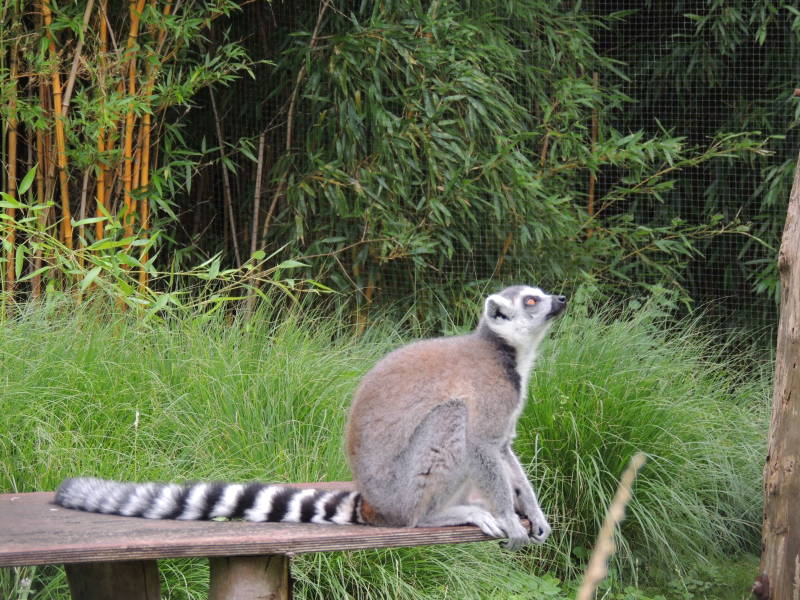 Nog voordat je door de ingang bent gegaan, zie je aan je rechterhand een grote kooi met ringstaartmaki's.