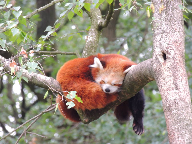 Dit is de kleine Pandabeer, slaapt uren achtereen boven in een boom.