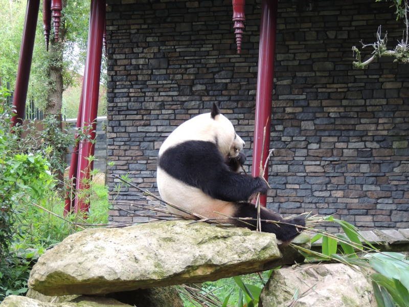 Het mannetje Reuzenpanda was 's morgens al buiten, dit werd me verteld door een andere fotograaf, want de beren zitten apart van elkaar, zowel in het binnenverblijf als in het buitenverblijf.